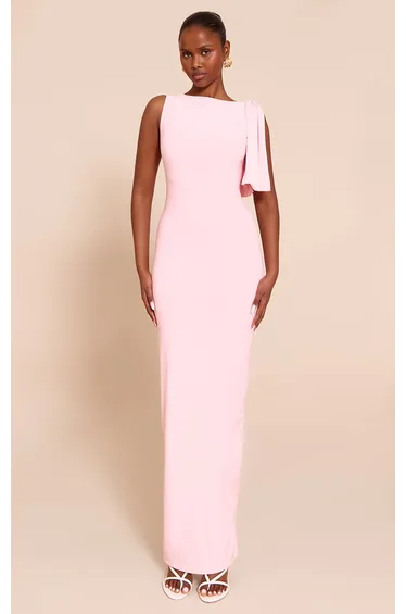 Bring the drama in the baby pink slinky knot drape midaxi dress, where sculptural details meet a romantic hue. Made from soft slinky fabric with a statement front knot and elegant draping, this midaxi length keeps things sultry and sophisticated. Style with strappy heels and slicked-back hair for major main character energy.