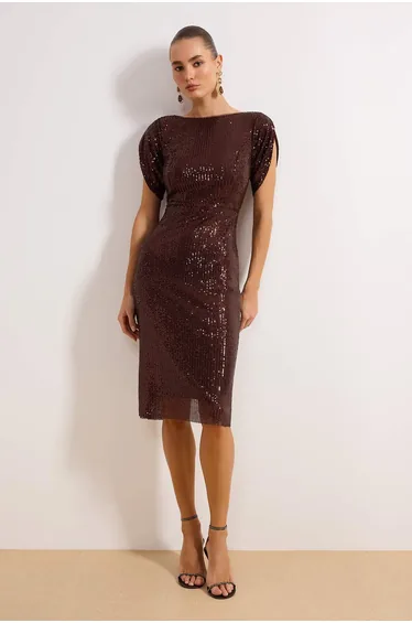 Brown Body-Styling Glittery Knitted Sequin Chic Evening Dress