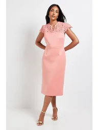 Petite Scuba Lace Sleeve Pencil Dress