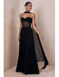 Features- Premium stretch jersey- Bandeau neckline- Mesh detail- Scarf detail- Invisible zip closure- Maxi length