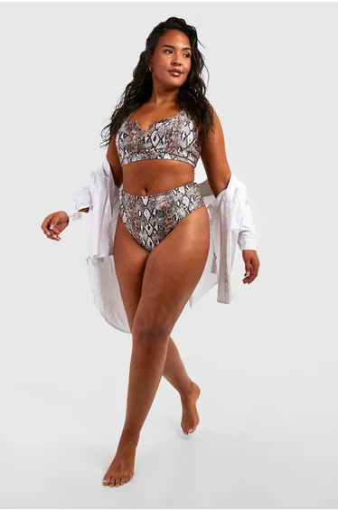Sky high condfidence is inevitable in this plus size swimwear from our latest collection. Curve enhancing, silhouette smoothing, and perfect for poolside lounging, this style is guaranteed to make you feel like the best version of yourself. Pair with a floaty kimono and some oversized sunnies and prepare to cause a storm. Need more inspo? Choose a plus size swimsuit for sunset loving nights at the beach or a plus size bikini to snatch that tan. Available in a range of prints, colours, and silhouettes, from high waisted to one pieces, grab yourself some dreamy curve swimwear that makes you feel confidently you.shop it all on boohoo.Style: Bikini BottomsDesign: SnakeFabric: Swim