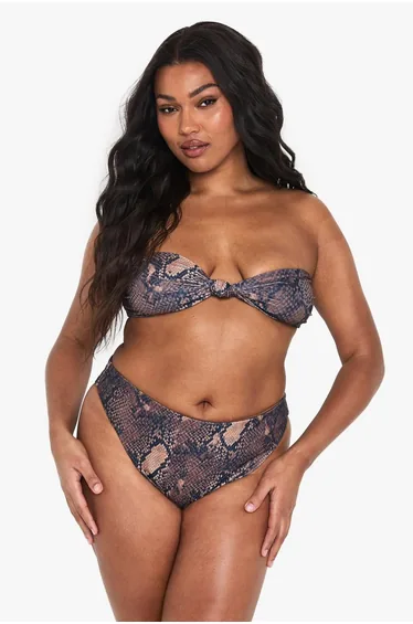 Plus Snake Print High Waisted Bikini Bottoms - snake