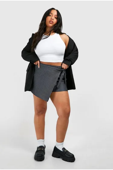 On the hunt for the perfect summer staple? Look no further than this pair of plus size shorts. Comfortable, versatile, and perfect for summer styling, this pair have been made with extra fabric to ensure the perfect fit. Keep things casual in an oversized t-shirt and high top trainers, or team with heeled sandals and a floaty blouse for weekend plans. Need more inspo? Serve up some new energy with an iconic pair of plus size denim shorts - disclaimer, they look just as good with t shirts in the day as they do with lace bodysuits at night. Style: SkortsDesign: StripesFabric: BengalineLength: ShortModel's height: 170cm / 5'7"