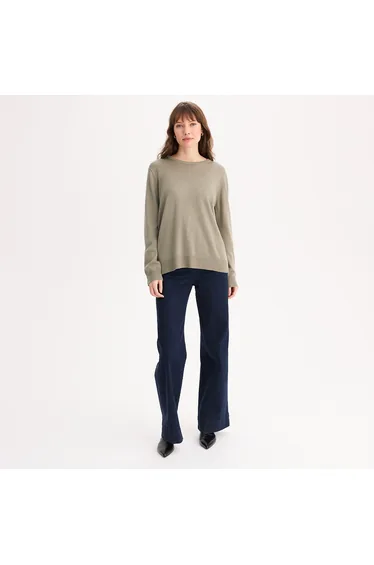 Combining warmth and softness, this jumper/sweater in a fine wool and merino wool knit is a wardrobe essential. The buttons at the bottom of the sleeves add a modern touch, while its timeless shape makes it easy to wear.