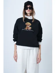 70% cotton 30% polyester; product length: 65 cm waist: 100 cm chest: 120 cm sleeve: 50 cm; this women's sweatshirt, which stands out with its comfortable cut and fun print detail, offers comfort and style together in daily combinations. The oversize form creates a modern silhouette, while its cotton fabric provides a soft use all day long with its breathable structure. The round neck detail gives a classic look. It is an ideal sweatshirt model for those who love sporty elegance in women's clothing collections. Sample size: s/36/1; model's measurements: height: 1.70, chest: 80, waist: 58, hip: 89, size: s/36/1; colors may vary in studio shots due to light difference.