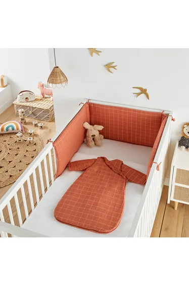 يتكون من 3 أو 6 ألواح يتم تثبيتها على السرير بأربطة، مما يمنع طفلك الصغير من الاصطدام برأسه أو أن تعلق يده أو قدمه بين القضبان أثناء نومه. صممه La Redoute Interiors.