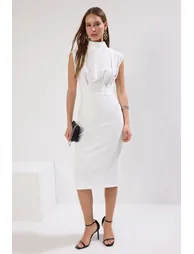 فستان ميدي مزموم بقصة مستقيمة - أحمر