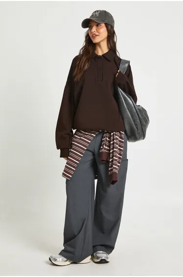 سويتشيرت بوهو بني بأكمام طويلة