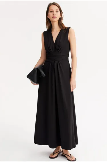 The black dress : fluid, long and ultra feminine, it's our favourite dress. We love the very flattering v-neck. Loose shoulders add a touch of elegance. It makes a gorgeous addition to your summer wardrobe.