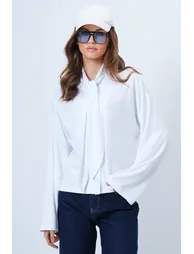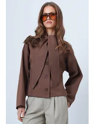 70% polyester 30% cotton; product length: 55 cm chest: 100 cm waist: 96 cm sleeve: 68 cm; this design, with its dense texture, keeps you warm and offers a strong silhouette thanks to its structured form. The scarf detail adds an elegant touch around the neck, while the button closure modernizes the classic look. Thick knitted fabric offers both comfort and elegance, making it an ideal choice during season transitions. ; a statement piece for those who want to add a touch of sophistication to their everyday style. Sample size: s/36/1; model measurements: height: 1.70 m, bust: 80 cm, waist: 58 cm, hips: 89 cm, size: s/36/1; colors may vary slightly in studio shots due to lighting differences. Women's navy blue buttoned jacket with scarf detail alc-x14669