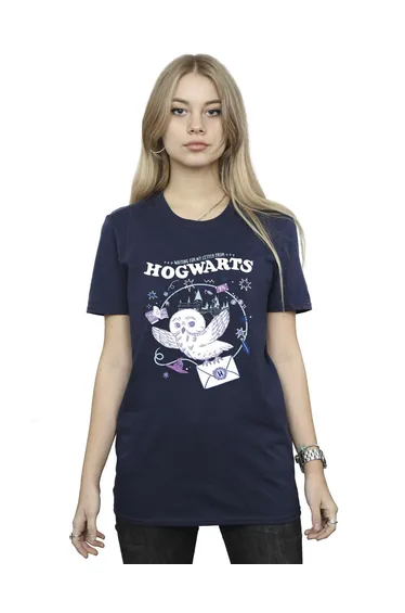 Harry Potter Womens/Ladies Owl Letter From Hogwarts Cotton Boyfriend T-Shirt - Navy Blue