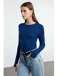 Black Viscose/Soft Fabric Finger-Touch Detailed Flexible Knitted Blouse