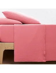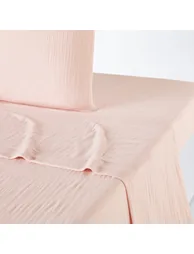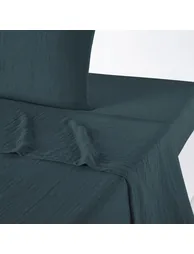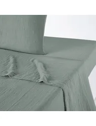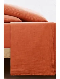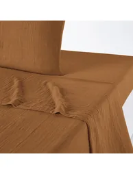 تتوفر ملاءة كوملا المسطحة المصنوعة من الشاش القطني بألوان معاصرة للغاية، مما يضفي جوًا مريحًا ودافئًا على غرفة النوم.