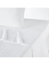 قماش الموسلين القطني خفيف ومرن وناعم للغاية. يتميز بملمس طبيعي ولا يتطلب كيًا ويصبح أكثر جمالًا بمرور الوقت. ناعم وسهل العناية: مزيج رابح!