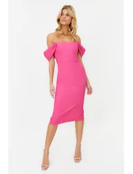 فستان زفاف ميدي ضيق بأكتاف مكشوفة