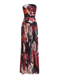 - طبعات زهرية، أسود، بدون أكمام، بدون كتف، فستان ميدي