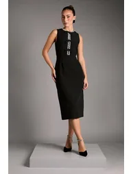 Sleeveless Crepe Midi Dress With Diamante Bow Detail