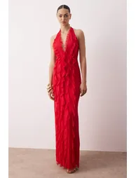 Limited Edition Pink Ruffle Lined Tulle Evening Dress Evening Homecoming Dress