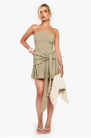 Linen Look pleated Wrap Mini Dress - green