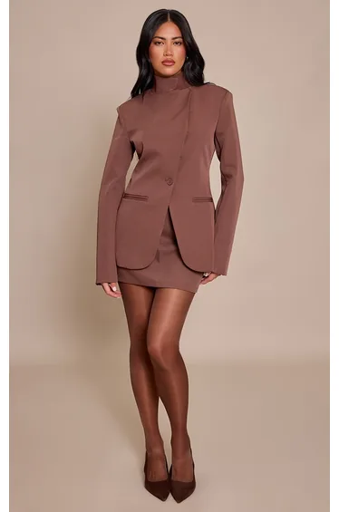 Own the evening agenda with the chocolate tailored woven mid rise mini skirt. Crafted in chocolate woven material, it features a mid-rise cut and sleek mini silhouette. It's your ultimate piece for a confident evening look. Team it with the matching blazer, sharp kitten heels, and a sleek black bag for an on-point finish.
