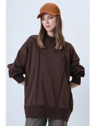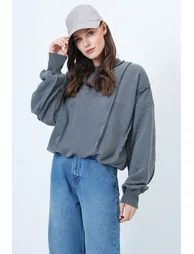 70% cotton 30% polyester; product length: 65 cm waist: 40 cm chest: 130 cm; this women's sweatshirt, which stands out with its minimalist design, offers a modern look with its prominent stitch details. The oversized cut creates a relaxed silhouette, while the soft-touch fabric ensures all-day comfort. Its flexible structure offers freedom of movement, and thanks to its simple form, it can be easily combined with different bottom parts. It is an ideal sweatshirt model for those looking for a comfortable, urban and modern stance in women's clothing collections. Sample size: s/36/1; model's measurements: height: 1.70, chest: 80, waist: 58, hip: 89, size: s/36/1; colors may vary in studio shots due to lighting differences.