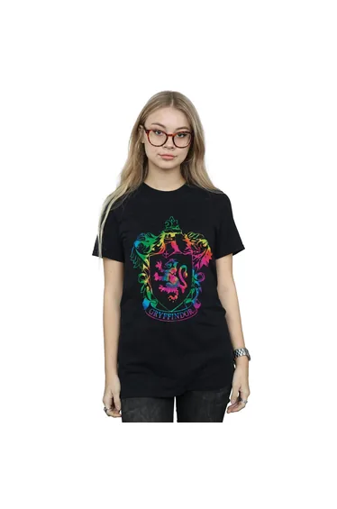 Harry Potter Womens/Ladies Gryffindor Crest Tie Dye Infill Cotton Boyfriend T-Shirt - Black