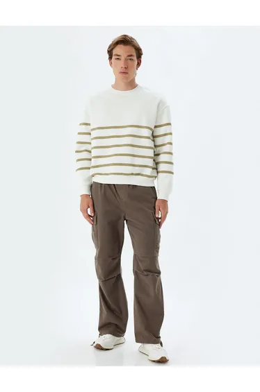 • كنزة واسعة بخطوط من مزيج القطن مع ياقة دائرية.