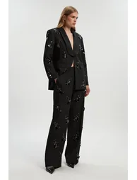 بنطلون بأرجل عريضة مزين بأحجار كريستال و الترتر
