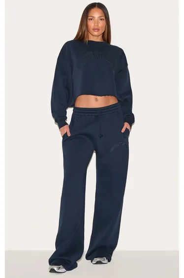 استمتع بأيام البرد بأسلوب أنيق مع هذه السراويل الرياضية ذات الأرجل الواسعة باللون الأزرق الداكن. مصنوعة من قماش بلون أزرق داكن مع تصميم واسع الأرجل وتفاصيل الرباط، كيف يمكنك المقاومة؟ ارتدي هذه السراويل الرياضية الزرقاء مع البلوزة المتطابقة والأحذية الرياضية للحصول على مظهر سهل لا مثيل له.