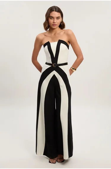 Compact Stretch Colour Block Tailored Bandeau Jumpsuit