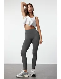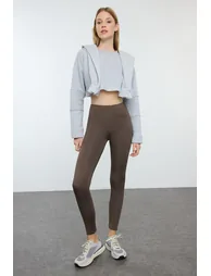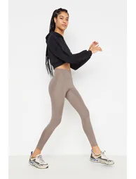 Dark Brown Wide Waist Elastic Extra Compression Full Length Knitted Sports Leggings