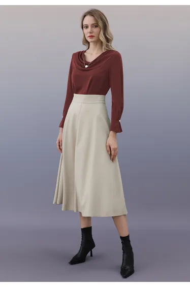 يتميز هذا القميص الأنيق من الساتان بلمسة نهائية فاخرة تعكس لمعانًا ناعمًا وبراقًا، مما يرفع أي إطلالة على الفور بأناقة خالدة. يحتوي على ياقة متدلية تضفي مظهرًا ناعمًا وأنثويًا، مع تزيين بعقد من اللؤلؤ لإضافة لمسة من السحر الراقي. أساور الأزرار اللؤلؤية تضيف تفصيلًا مصقولًا ومناسبًا يربط المظهر معًا، مما يمزج بين عناصر التصميم الفاخرة وسهولة الارتداء. مثالي للارتداء الرسمي أو الكاجوال، يجمع هذا القميص بين اللمسات الفاخرة والأسلوب المتنوع، مما يجعله قطعة بارزة تضيف أناقة مصقولة لأي خزانة ملابس عصرية.