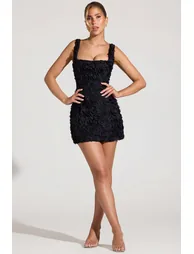 Florals that endure. Inspired by classic corsetry and couture-led elements, the Briar mini dress is an ethereal design, perfect for cocktail parties and evening events. It’s crafted from satin with a tulle overlay and adorned with all-over floral appliqués that create a stunning three-dimensional look. Cut to a micro length, it features an internal boned corset for enhanced support and turns to reveal lace-up detailing at the back.• Straight neck • Wide adjustable shoulder straps • Internal boned corset • All-over custom floral appliqués and sequin embellishment • Lace-up back with tie fastening • Concealed side zip fastening • A-line skirt • Mini length, approx. 82cm based on a UK size 8 • We do our best to ensure that our photos are as true to colour as possible. However, due to inconsistencies in monitors, digital photography, and product variations, we cannot guarantee that the colour you see on your screen accurately portrays the true colour of this product