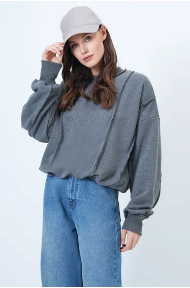 Women's Anthracite Stitching Detailed Oversized Design Sweatshirt