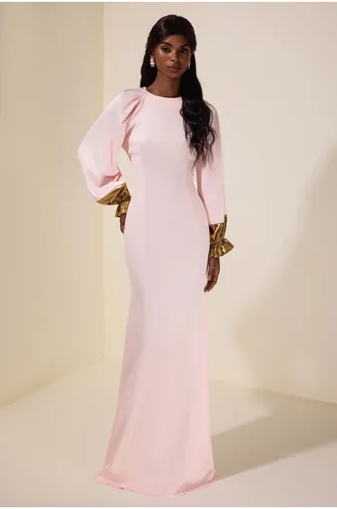 فستان ماكسي ساتان ميتاليك بأكمام راجلان