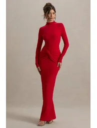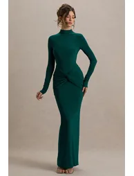 فستان ماكسي بتفصيلة ملتفة بياقة عالية - أسود