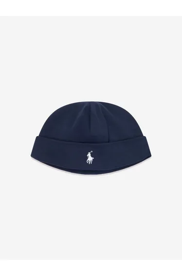 Keep little heads warm with this navy beanie from premium brand Ralph Lauren.