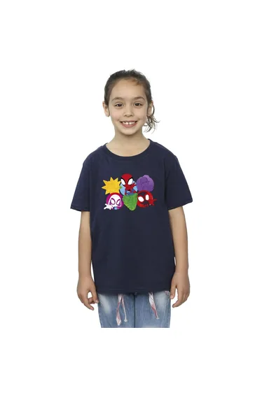Marvel Girls Spidey And His Amazing Friends Faces Cotton T-Shirt - Navy Blue