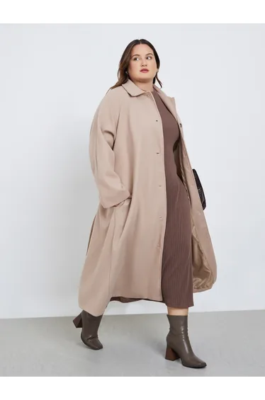 Stay stylishly modest with our plus-size, oversized brown shacket. A longline, button-up design in woven polyester.