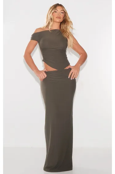 Take the stress out of weekend styling with this unreal olive soft touch low rise maxi skirt. This maxi skirt is brought to you in an olive soft touch material with a low rise and a maxi length, you really can't go wrong with this maxi skirt doll. Style with the matching top, clear strap heels and gold accessories for a look that will have eyes on you for all the right reasons..