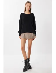 100% Acrylic; Crew neck, flexible structure, dropped shoulders, slit, basic knitwear sweater; Product Length: 64 cm Sleeve Length: 45 cm; Colors May Vary Due to Light Differences in Studio Shoots.;