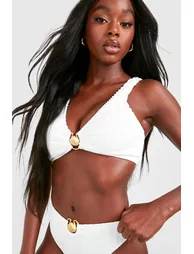 Hey mermaid, this bikini top is the feminine underwater-inspired look for you. This shell trim crinkle plunge bikini top accentuates the bust with its plunging neckline but offers the support you need. Details such as the crinkle fabric and shell detailing take this bikini top to the next level. Pair with the matching bottoms for a swim set you will be bringing on every holiday this summer.Wear Me With:Follow this summer's mermaid trend by styling this shell-detailed bikini top with matching bottoms and shell earrings.Style: Bikini TopFabric: Swim