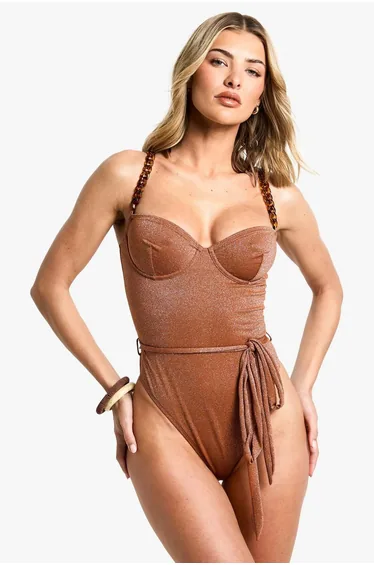 Premium Swim Underwire Chain Strap Glitter Swimsuit