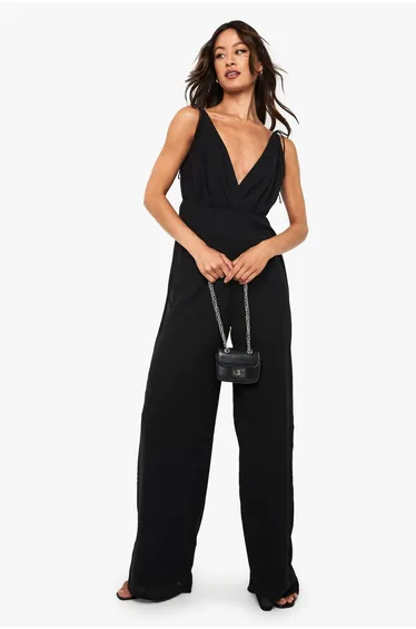 Tall Chiffon Strappy Wide Leg Jumpsuit - black
