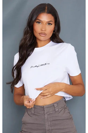 Hit refresh on your staple pieces this season with this T-shirt doll. Featuring an organic white material with a cropped fit and short sleeves, what's not to love? Wear with your staple pair of bottoms and box-fresh boots for an effortless off-duty combo. PLT Sustainability. Endeavouring to make a positive change and help create a more sustainable future.