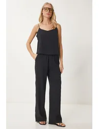 100% Cotton; Thin straps, U-neck Set consisting of crop blouse and elastic waist, side pockets, wide leg trousers; Product Length: 48 cm Trouser Length: 105 cm; Colors May Vary Due to Light Differences in Studio Shoots.; Height: 1.73 cm. Chest: 79 cm. Waist: 60 cm. Hip: 90 cm.