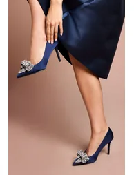 Wide Fit Tania Satin Embellished Bow High Heel Stiletto Court Shoes