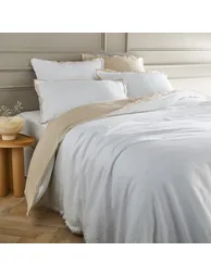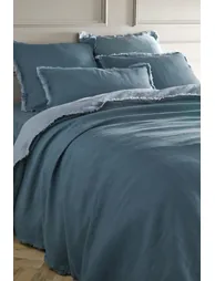 بفضل نهايته المزينة بالشرابات المزدوجة، يضفي هذا الفراش المصنوع من الكتان المغسول لمسة من الرقي.
