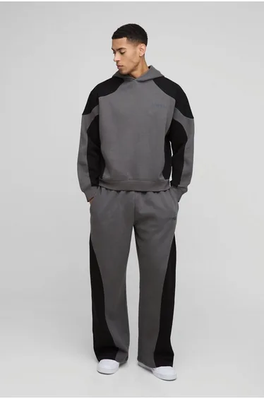 بدلة رياضية بغطاء رأس بتفاصيل خياطة للرجال بتصميم واسع ومربع