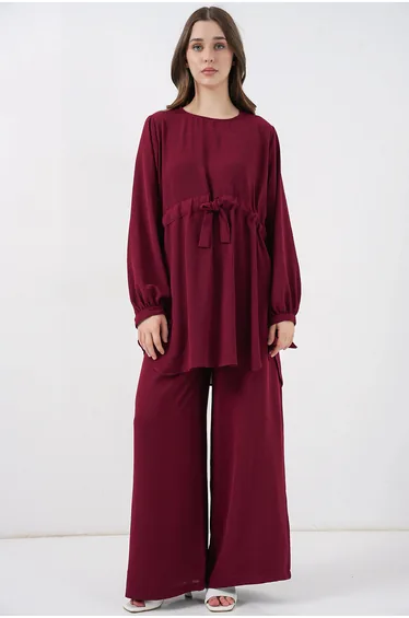 BDART Crew Neck Tie Detail Tunic and Wide Leg Pants Set
